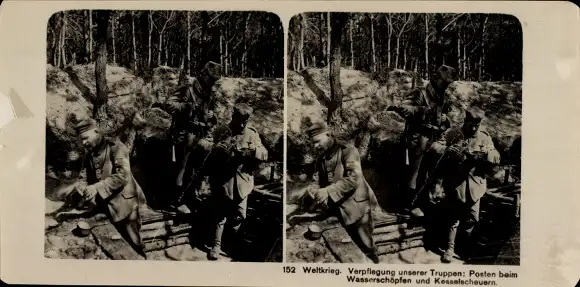 Stereo Foto Verpflegung der Truppen, Posten beim Wasserschöpfen, I WK