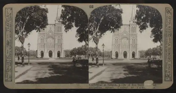 Stereo Foto Vietnam, Saigon, Straßenbild mit Kirche
