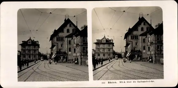 Stereo Foto Zürich Stadt Schweiz, Blick über die Rathausbrücke