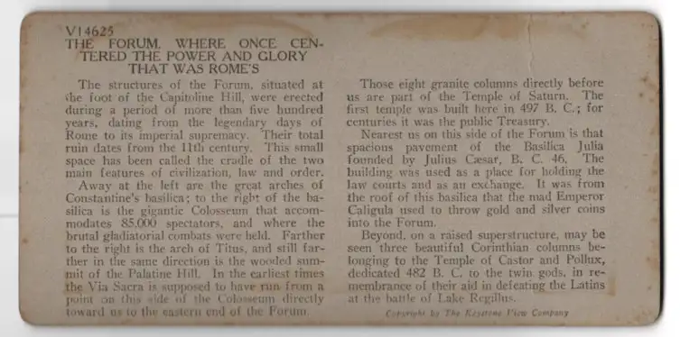 Stereo-Fotografie Keystone View Co., Meadville, Ansicht Rome, Ruins of the Forums, Center of Power and Glory