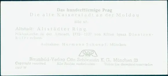 Zustand, siehe Scan, ungelaufen- Raumbild-Verlag Otto Schönstein, Das hunderttürmige Prag Bild 67 - ca 14 cm X 6 cm