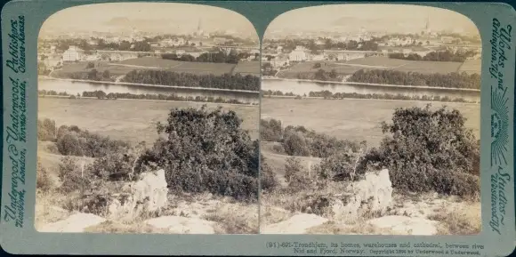 Stereofoto Trondhjem Norwegen, Blick auf die Stadt