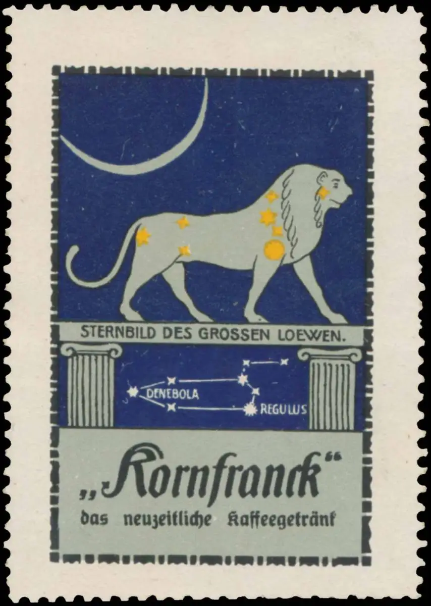 Sternzeichen, Kornfranck das neuzeitliche Kaffegetränk, Größe/Zustand: 6x4 , guter Zustand, Original alte Reklamemarke die seinerzeit für die Werbung benutzt wurde