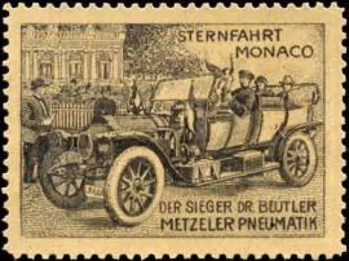 Der Sieger Dr. Beutler, Metzeler Pneumatik. Schwarz, grau, Auto, Automobil, Größe/Zustand: 3x4 , guter Zustand, Original alte Reklamemarke die seinerzeit für die Werbung benutzt wurde