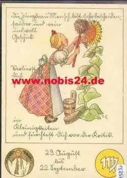Sternzeichen, Jungfrau mit Eigenschaften, Nr. 860/9 *ca. 1950