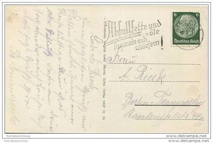 Stettin - Hakenterrasse - Verlag Hans Andres Hamburg - rückseitig Klebestellen (E9921) gel. 1937