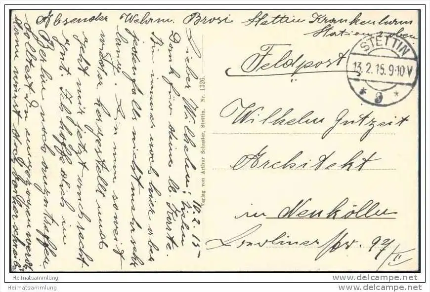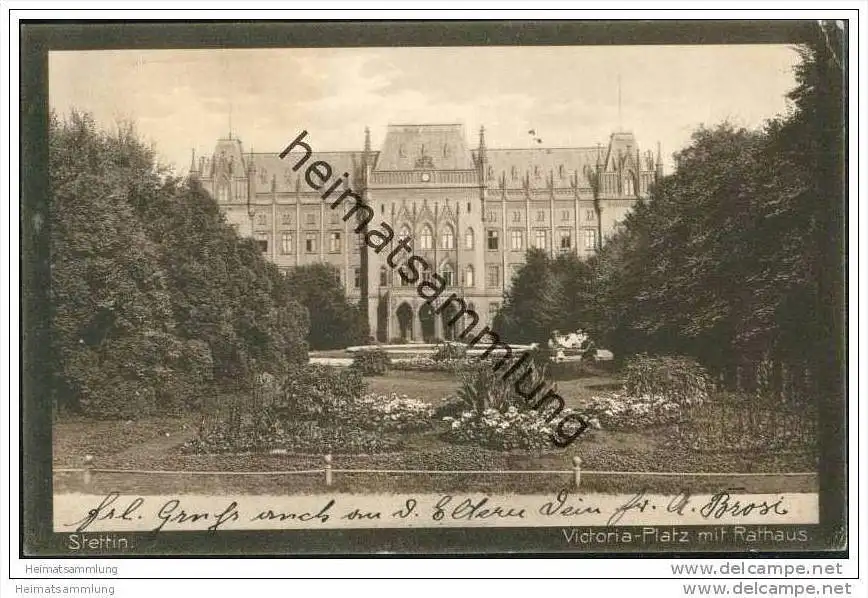 Stettin - Victoria-Platz mit Rathaus - Verlag Arthur Schuster Stettin - kleiner Eckknick oben rechts - Feldpost (E571) gel. 1915