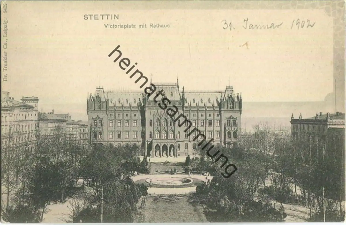 Stettin - Victoriaplatz mit Rathaus - Verlag Dr. Trenkler Co. Leipzig 1902