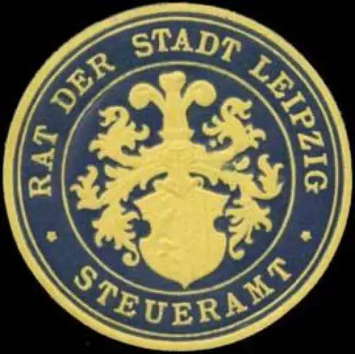 Rat der Stadt Leipzig, dunkelblau, gelb, geprägt, Größe/Zustand: 4 , guter Zustand, Original Verschluss-Siegelmarke aus Papier welche früher von Behörden, Firmen etc. zum Versiegeln der Briefe benutzt wurden
