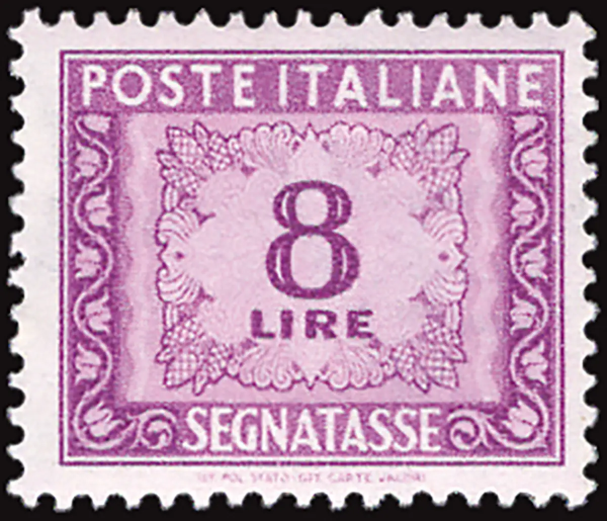MNH - Vollgummi - - Steuermarken 8 Lire Nr. 103 schönes Exemplar mit Wasserzeichen in DB-Position - Kat. euro 135 Cod.832/182