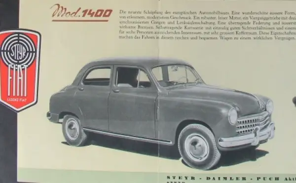 Steyr Fiat 1100 E 1400 Modellprogramm 1948 Automobilprospekt (6200)