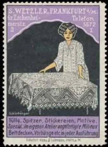 Tülle, Steickereien, Motive, Größe/Zustand: 5x4 , guter Zustand, Original alte Reklamemarke die seinerzeit für die Werbung benutzt wurde