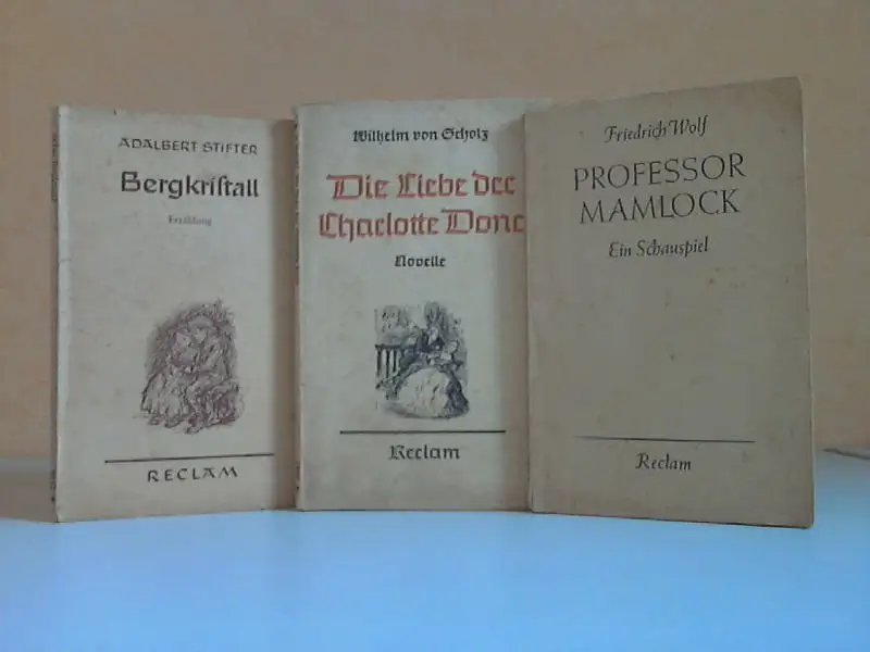 die Seiten sind altersbedingt stärker gebräunt und fleckig, Einbandkanten teils bestoßen, die Bücher sind in gebrauchtem, akzeptablen Zustand, "Bergkristall" ist eine schöne Erzählung Das Stück "Professor Mamlock" und die kämpferische Haltung dieses mutigen jüdischen Arztes, dieses deutschen Humanisten und Patrioten, sollte ... mit dazu helfen, die braune Schande vom Angesicht unseres Volkes wieder abzuwaschen. "Die Liebe der Charlotte Done" ist eine Novelle ... (über die Bücher) Beschreibung vom Antiquariat Ardelt 3n4a Antiquariat Ardelt