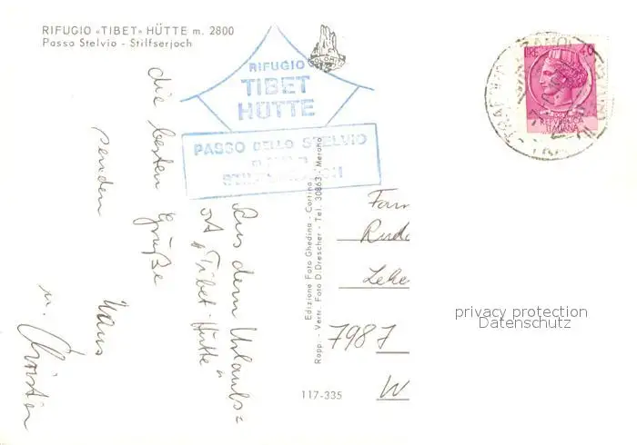 Stilfserjoch Rifugio Tibet Huette Passo Stelvio Stilfserjoch postalisch gelaufen 1971 Erhaltung siehe scans [FriedD77] Frierer