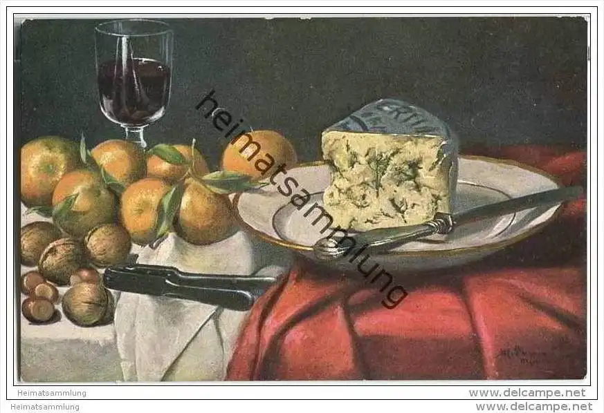 Stilleben - Mandarinen - Käse - Nüsse - signiert