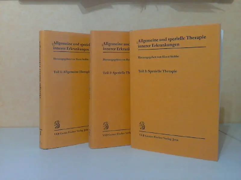 alle 3 Bücher stind Bibliotheksexemplare mit Stempel und Rückständen, gebräunt und fleckig, Umschlagkanten mit Bestoßungen, aus dem Inhalt: BAND 1: Allgemeine Therapie: Antibakterielle Chemotherapie (Antibiotika) - Antibakterielle Chemotherapie (Sulfanilamide und andere antimikrobielle Substanzen) - Antineoplastische Chemotherapie - Therapie mit Glucocorticoiden - Therapie mit Herzglycosiden - Therapie mit Diuretika - Therapie mit antithrombotischen Medikamenten - Therapie mit Schmerz- und Schlafmitteln - Therapie mit Psychopharmaka - Therapie mit Vitaminen - Therapie mit Blut und Blutbestandteilen - Arzneimittelwech sei Wirkungen - Pharmakotherapie und Alter - Psychotherapie - Physiotherapie - Therapie mit ionisierenden Strahlen - Diätetik - Intensivtherapie. BAND 2: Spezielle Therapie: Herzinsuffizienz - Hypertonie - Hypotonie - Schock - Ischämische Herzkrankheit - Herzrhythmusstörungen - Erkrankungen des Myokards, Perikards und Endokards sowie die erworbenen Herzklappenfehler - Pulmonale Herzkrankheiten - Zerebrovaskuläre Insuffizienz - Arterielle Durchblutungsstörungen - Venen und Lymphgefäßerkrankungen - Lungenkrankheiten - Immunerkrankungen - Erkrankungen der Erythrozytopoese - Chronische myeloproliferative Erkrankungen und akute myeloische Leukämien - Maligne Lymphome - Maligne Gammopathien - Hämorrhagische Diathesen - Erkrankungen der Leber - Erkrankungen der Gallenblase und der Gallenwege - Erkrankungen des exkretorischen Pankreas. BAND 3: Spezielle Therapie: Kohlenhydratstoffwechselstörungen - FettstoffWechselstörungen - Purinstoffwechselstörungen (Gicht) - Erkrankungen der Verdauungsorgane - Erkrankungen der Nieren und der ableitenden Harnwege - Störungen des Elektrolyt-, Wasser- und Säuren-Basen-Haushaltes - Erkrankungen der Bewegungsorgane - Endokrine Erkrankungen - Erkrankungen durch physikalische Faktoren - Erkrankungen durch Viren und Rickettsien - Erkrankungen durch Bakterien Erkrankungen durch Protozoen - Systemmykosen - Einheimische und tropische Wurmerkrankungen - Tuberkulose Beschreibung vom Antiquariat Ardelt 2c4 Antiquariat Ardelt