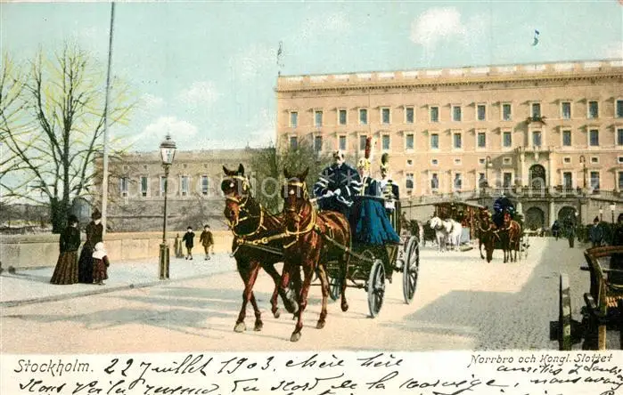 Stockholm Norrbro och Kongl Slottet Stockholm postalisch gelaufen 1903 Erhaltung siehe scans [WerneD78] WernPID7