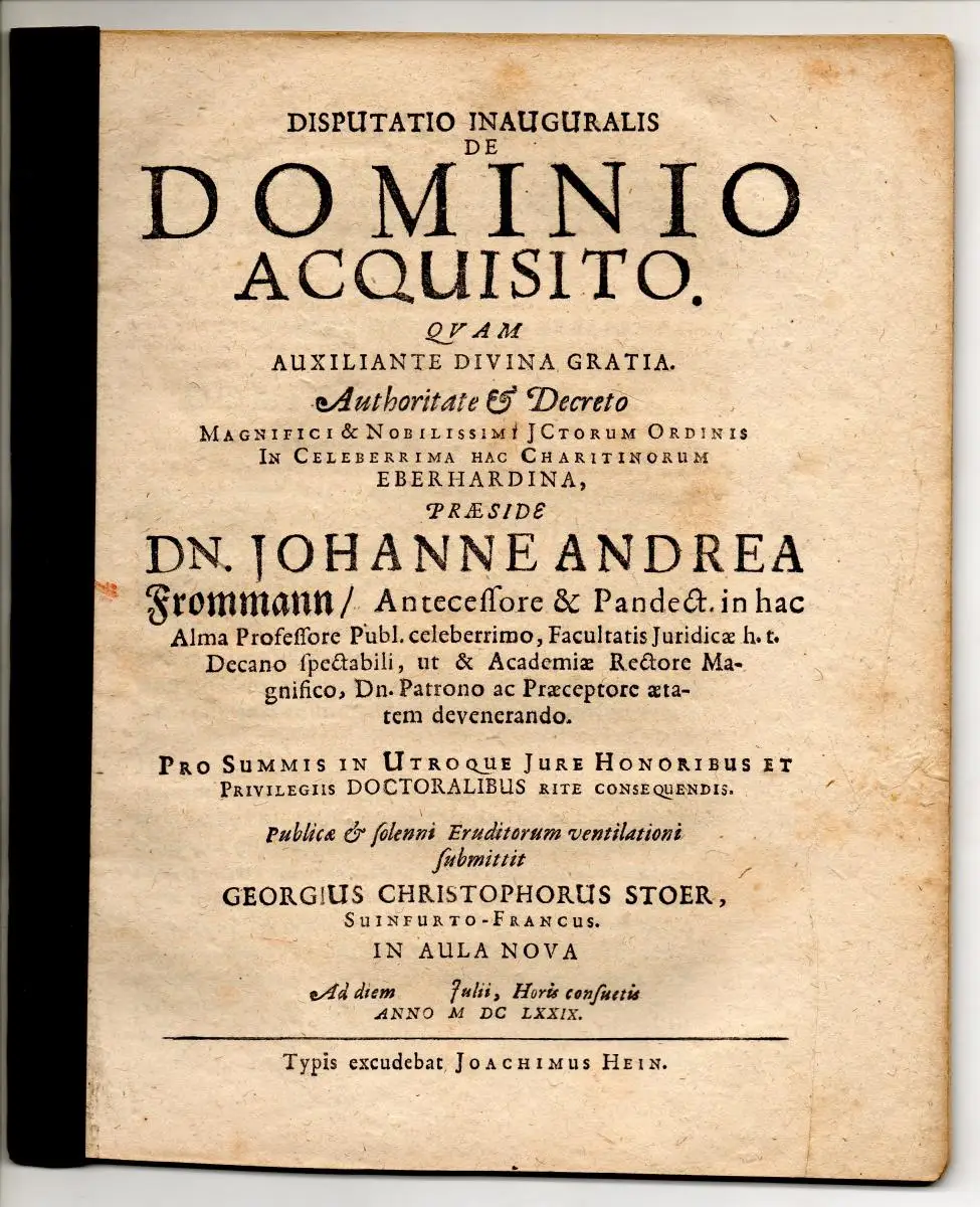 Stoer, Georg Christoph: aus Schweinfurt: Juristische Inaugural-Disputation. De dominio acquisito.