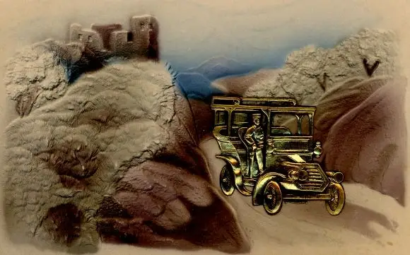 Stoff Ak Automobil, Fahrer, Schloss, Bäume
