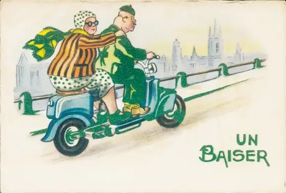 Stoff Ak Ehepaar fährt Motorrad, Ausflug
