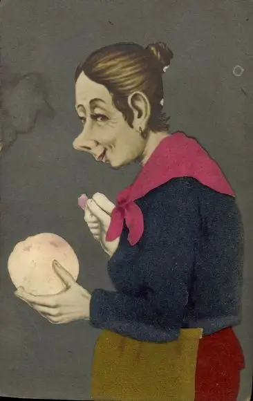 Stoff Ak Frau eine Frucht in der Hand haltend