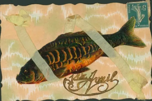 Stoff Ak Glückwunsch 1. April, Fisch, Stoffschleife