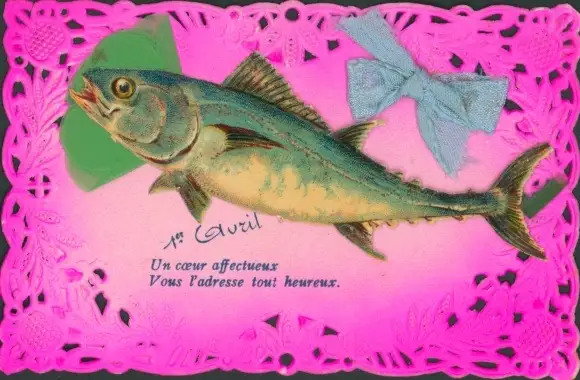 Stoff Ak Glückwunsch 1. April, Fisch, Stoffschleife
