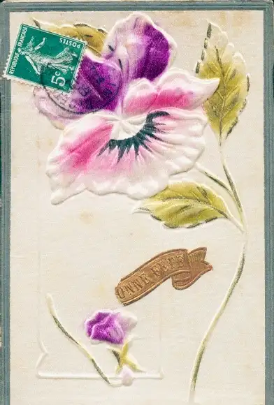 Stoff Ak Glückwunsch, Blühende Blume, Kitsch