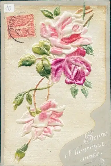 Stoff Ak Glückwunsch Neujahr, Rosen