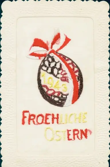 Stoff Ak Glückwunsch Ostern, Osterei, Schleife