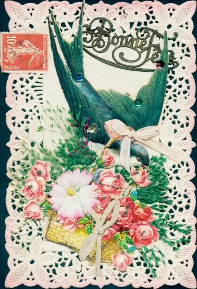 Stoff Ak Glückwunsch, Schwalbe, Blumenkorb, Post