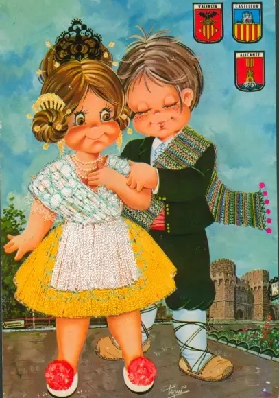 Stoff Ak Kinder in spanischen Trachten, Liebespaar