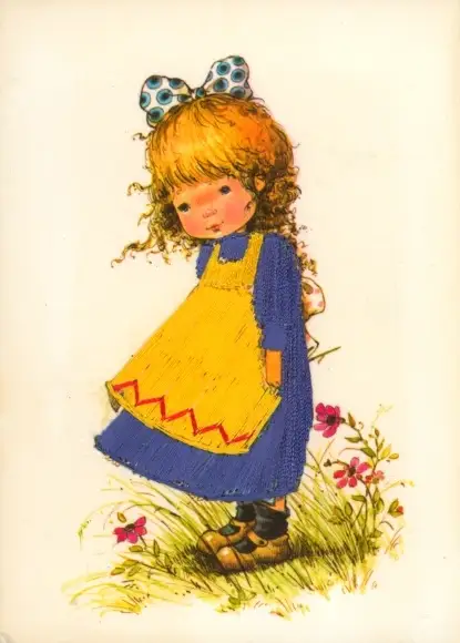 Stoff Ak Mädchen auf einer Wiese, Blaues Kleid