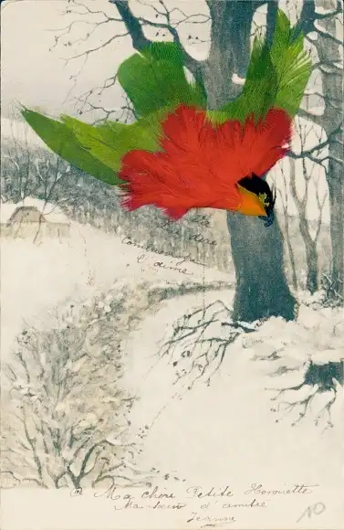 Stoff Ak Raubvogel, Echte Federn, Winter, Schnee