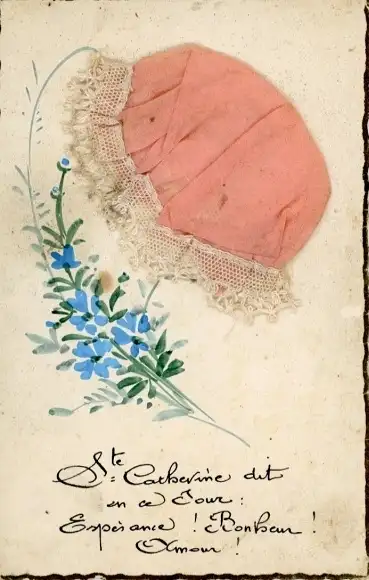 Stoff Ak Sankt Katharina, Mütze, Blumen, Kitsch
