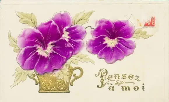 Stoff Ak Stiefmütterchen, Blumenvase, Kitsch