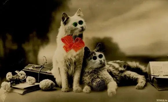 Stoff Ak Zwei Katzen, Schleife, Rosen, Wollknäuel