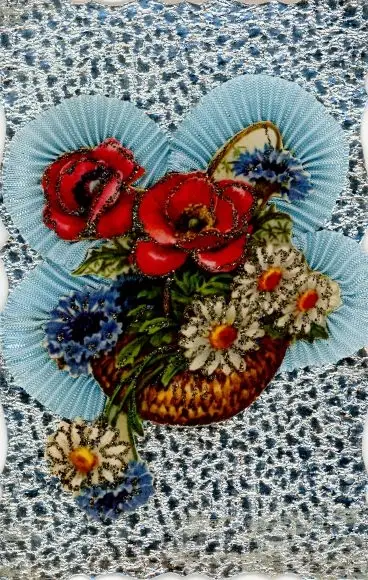 Stoff Glitzer Ak Blumenkorb, Margeriten, Rosen