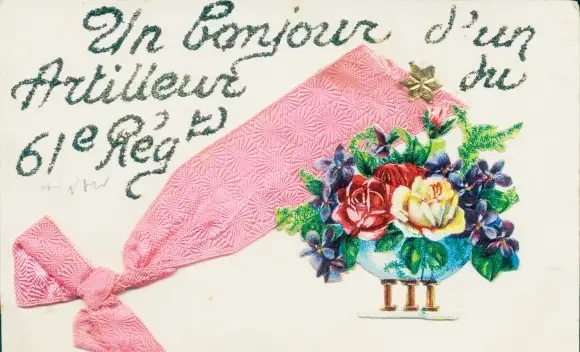 Stoff Glitzer Ak Stoffschleife, Blumenstrauß, Rosen, Veilchen