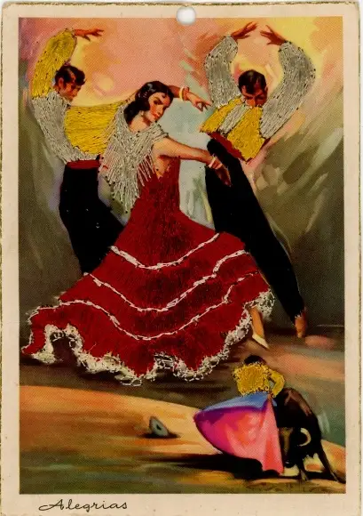 Stoff Künstler Ak Alegrias, Tanzende Menschen, Stier