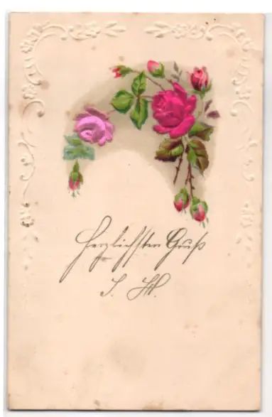 Stoff-Präge-AK Blühende Rosen aus echtem Stoff