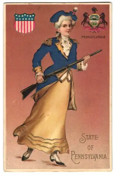 Stoff-Präge-AK Eine Dame in Uniform aus echtem Stoff mit einem Gewehr
