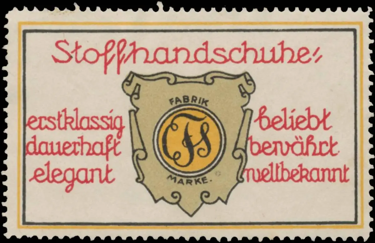 Fabrikmarke, Handschuhe, Größe/Zustand: 4x6 , guter Zustand, Original alte Reklamemarke die seinerzeit für die Werbung benutzt wurde