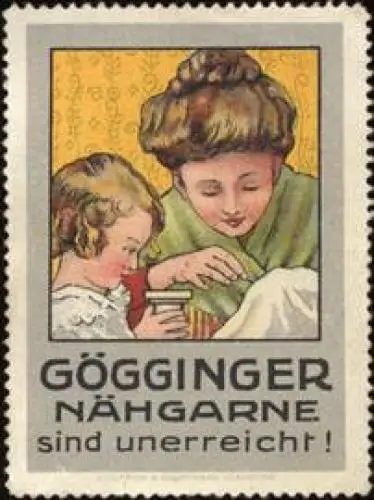 Gögginger Nähgarne sind unerreicht, Garn, Größe/Zustand: 6x5 , guter Zustand, Original alte Reklamemarke die seinerzeit für die Werbung benutzt wurde