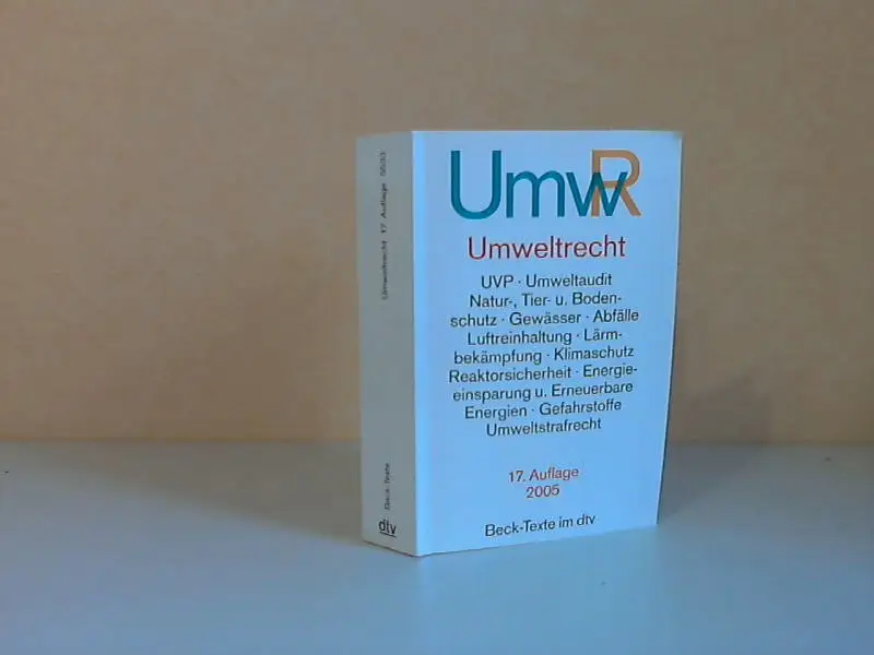 das Buch stammt aus einer Haushaltsauflösung,fleckig, Einbandkanten mit Bestoßungen, Aus dem Inhalt: UmweltverträglichkeitsprüfungsG - UmweltinformatlonsG - EG-UmweltauditVO, UmweltauditG - BundesnaturschutzG - TierschutzG - Bundes-BodenschutzG - WasserhaushaltsG - AbwasserabgabenG - Kreislaufwirtschafts- und AbfallG - Elektro- und ElektronikgeräteG - Bundes-lmmissionsschutzG Treibhausgas-EmissionshandelsG - AtomG - EnergieeinsparungsG - Erneuerbare-EnergienG Kraft-Wärme-KopplungsG - StromsteuerG -ChemikalienG PflanzenschutzG - GentechnikG UmwelthaftungsG Beschreibung vom Antiquariat Ardelt 4a4b ISBN-Nummer: 3423055332 Antiquariat Ardelt