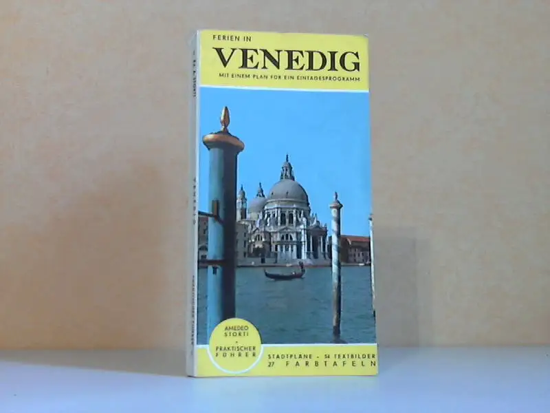 das Buch ist ein Dachbodenfund, gebräunt, fleckig, Einbandkanten mit Bestoßungen, letze Seite ist teils lose, ... Eine vollständige Übersicht von Venedig, Interessantes und Kurioses. Reisebüros, Fahrpläne, Konsulate, öffentliche und private Verkehrsmittel, Tarife, Hotels, Pensionen und Campings. Dieser Führer, nach praktischen Richtlinien verfaßt, wird Ihnen den Zauber Venedigs enthüllen. ... (vom Einbandrücken) Beschreibung vom Antiquariat Ardelt 4a4b Antiquariat Ardelt