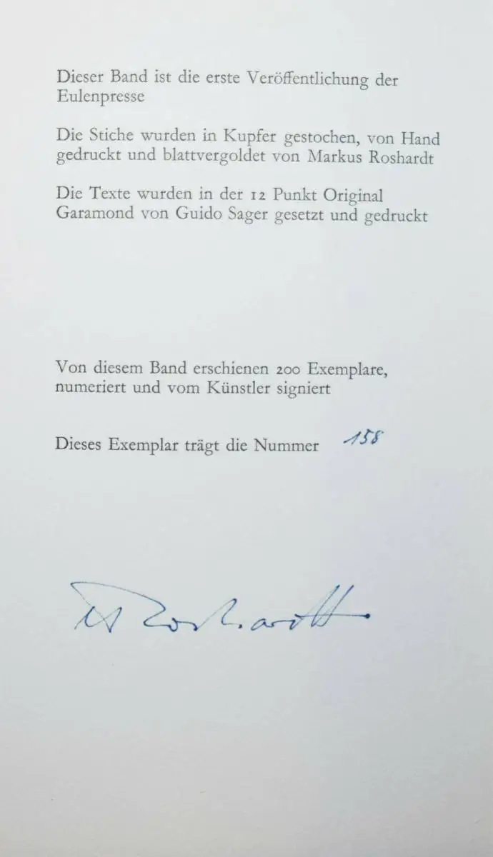 der Eulenpresse. – Eines von 200 num. Exemplaren, im Impressum von M.