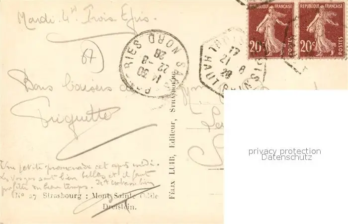 Strasbourg_Alsace Mont Sainte Odile Dreistein Ruine Strasbourg Alsace postalisch gelaufen 1928 Erhaltung siehe scans [FriedD77] Frierer