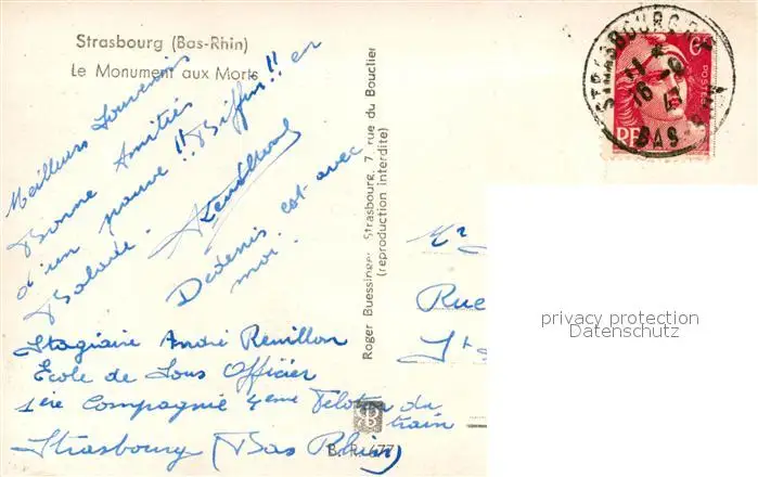 Strasbourg_Alsace Monument aux Morts Kriegerdenkmal Strasbourg Alsace postalisch gelaufen 1947 Erhaltung siehe scans [FriedD77] Frierer