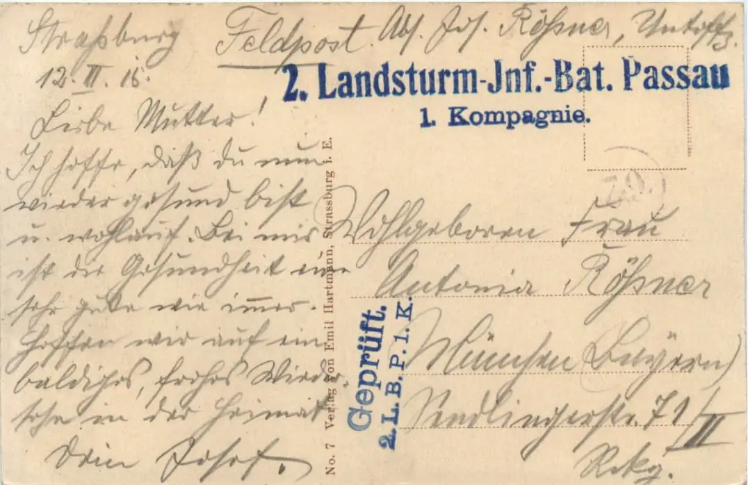 Strassburg - Feldpost 2. Bayr. Landsturm Passau -495446